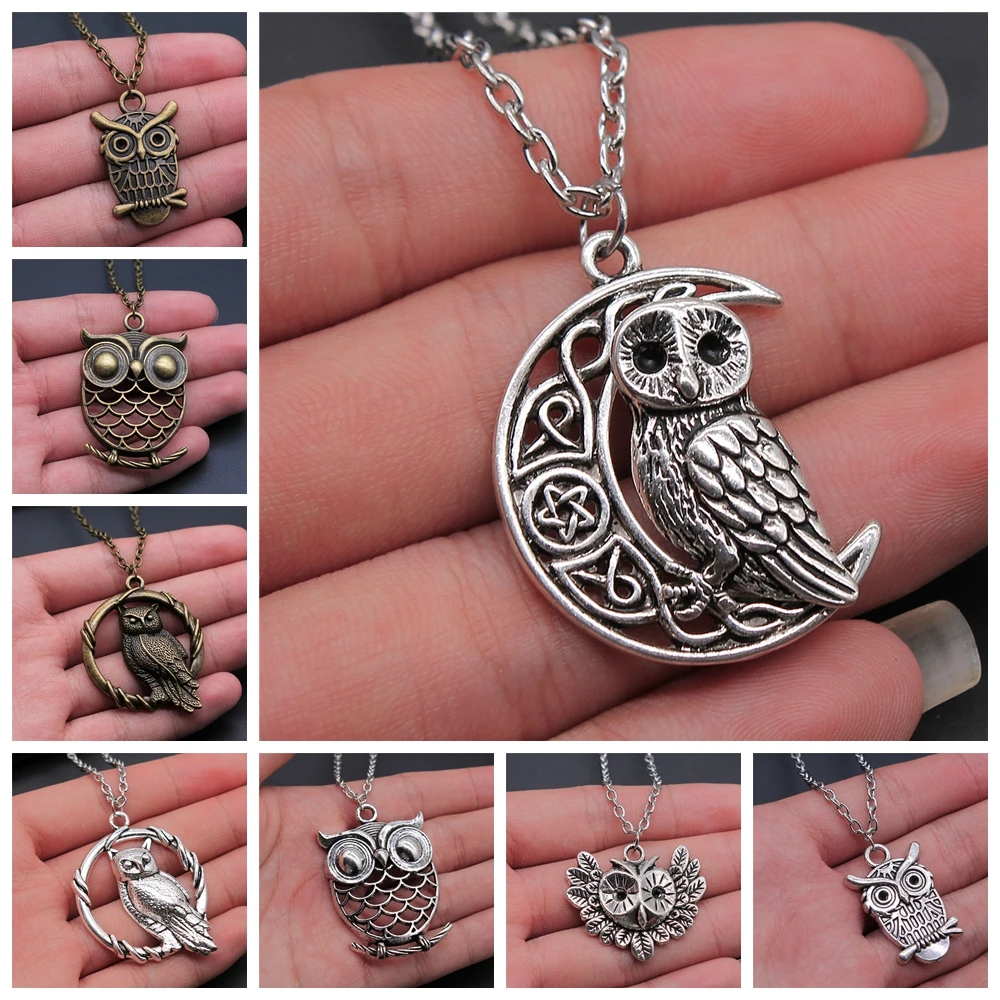 Name: Colgante de búho con cadena de Metal para mujer y hombre, collar de cadena larga, Color Bronce Antiguo, 2 colores