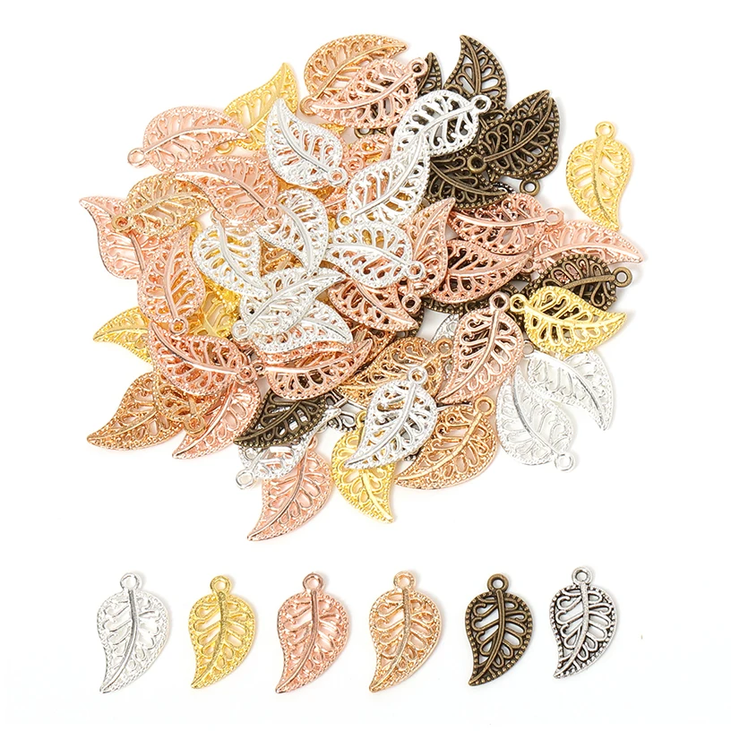 Name: Colgantes de hojas de árbol de 17x9mm, 50 Uds., colgantes, collar, pulsera, tobillera, accesorios para fabricación de joyas, DIY