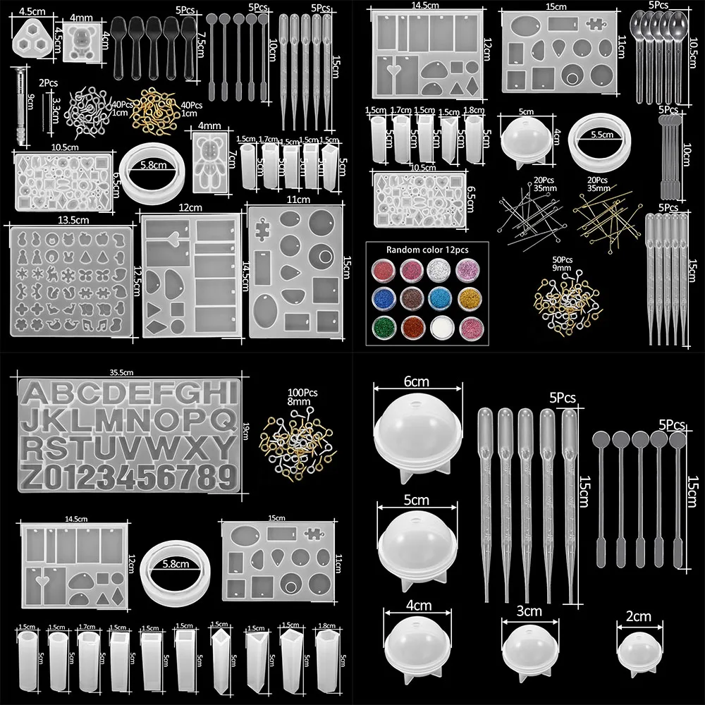 Name: Moldes de fundición de silicona para joyería, juego de herramientas de estilo mixto, moldes de fundición epoxi para fabricación de joyería DIY, 300 Uds.